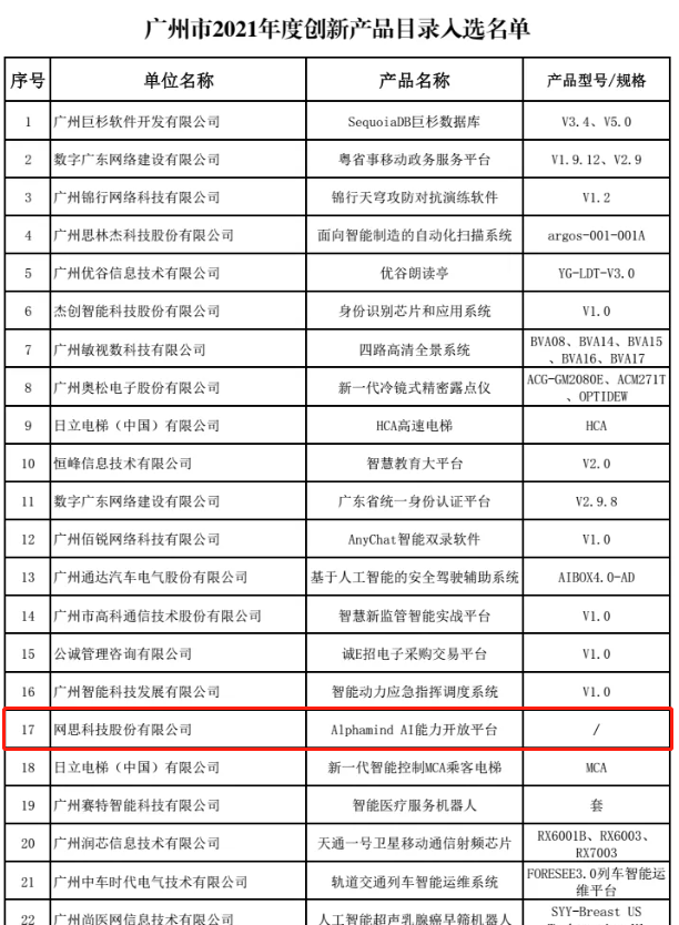 网思科技凭借雄厚的技术实力成功获得CMMI5、CCRC、6个ISO标准认证等资质,并被授予国家专精特新小巨人企业、国家高新技术企业、广东省专精特新中小企业和广州未来独角兽创新企业等多项政府和行业的重要荣誉。